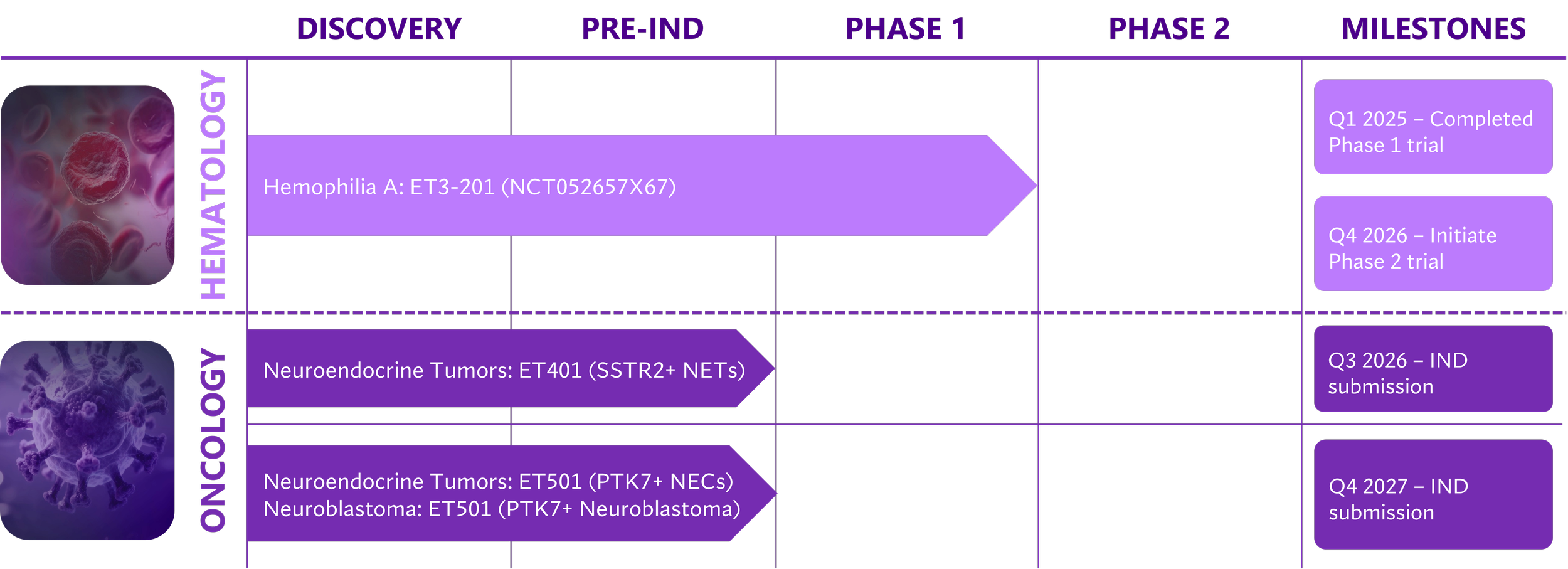Expression Therapeutics is a clinical-stage biotechnology company pioneering a curative gene therapy for hemophilia A and best-in-class cell therapies for neuroendocrine tumors (NETs). Our work is powered by proprietary AI-based technological breakthroughs and an integrated 43,000 sq ft GMP manufacturing facility.